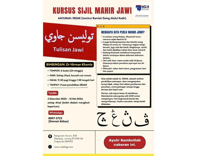Contact IDRAK Singapore to embrace the Jawi language NOW!
